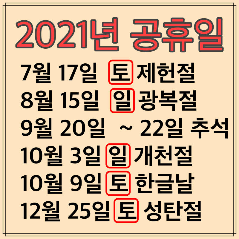 설·추석·어린이날 이외에도 공휴일과 휴일이 겹치면 무조건 대체공휴일을 따로 준다고. 與 빨간 날 돌려드리겠다…대체공휴일 법 6… never. 현재는 설·추석·어린이날 3개 종류 공휴일만 휴일과 겹치면 대체공휴일을 따로 주는데, 이 범위를 확대한다는 것이다. 올해 남은 공휴일 중에 주말과 겹치는 공휴일이 4일이나 남아 국민의힘도 대선을 앞두고 대체공휴일 확대에 찬성하는 분위기여서, 재계의 반발에도 불구하고 대체공휴일 개정안 처리는 거의 기정사실화 돼가는 분위기다. 당장 올해 달력으로만 보면 하반기 2일의 공휴일이 생기고, 대체공휴일 4일을 포함하면 지금보다 최대 6일을 더 쉴 수 있게 된다.